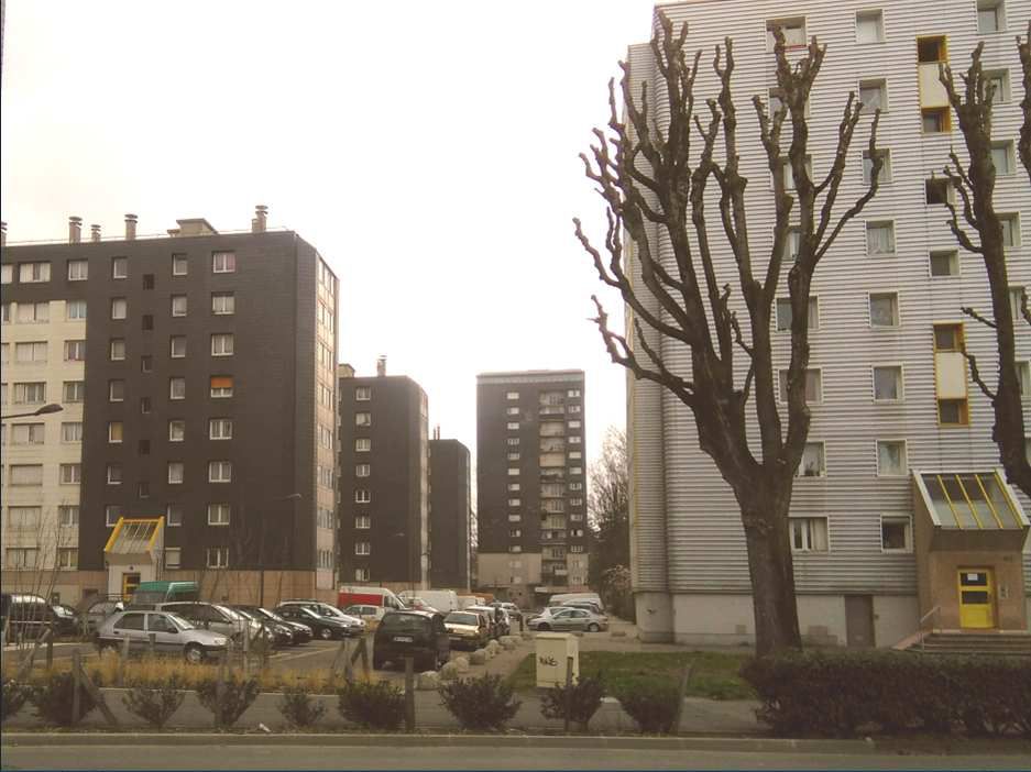 La cité : 15 immeubles en 3 îlots composés de 2 immeubles en L , 2 immeubles en I et 1 immeuble en U
