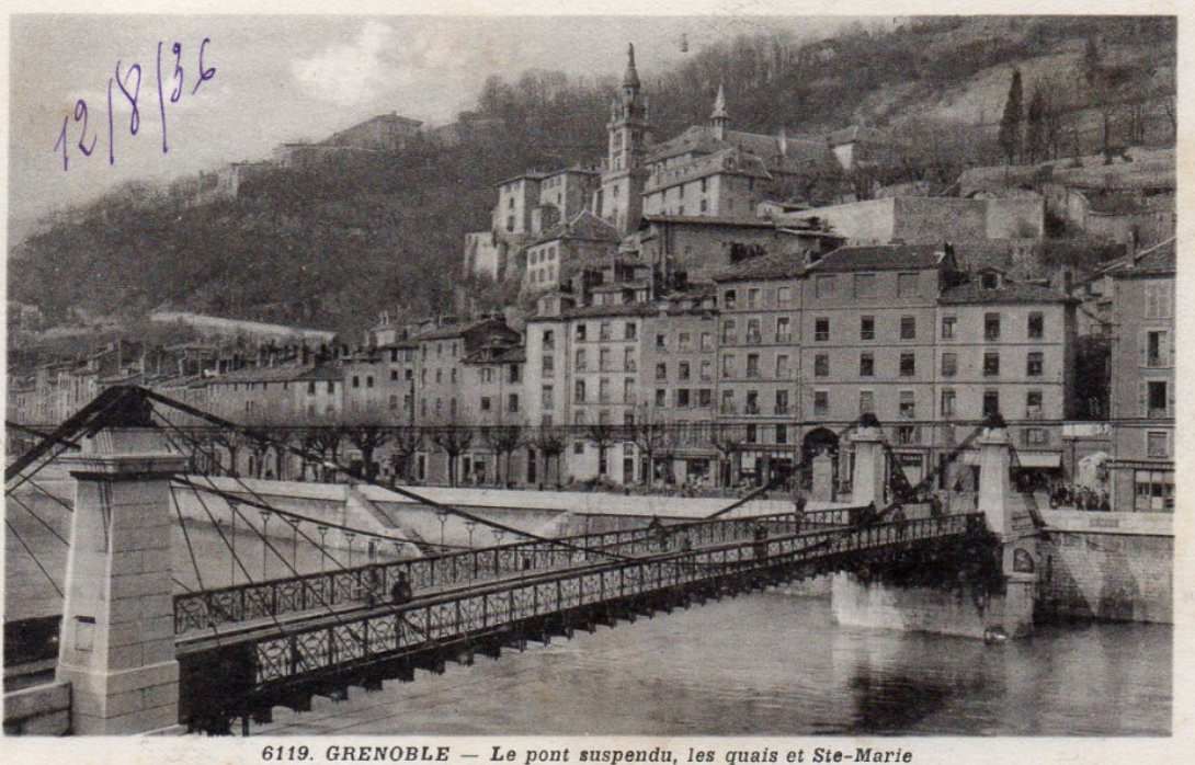Dernier pont suspendu grenoblois reliant quartier St Laurent au reste du centre historique. Il est devenu piéton depuis le début des années 70